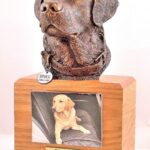 This highly detailed portrait of a Labrador Retriever Dog Urn was created by award winning American artist and will make a wonderful tribute to your beloved Lab. It is cast by “cold-cast bronze” (polymer resin/bronze powder mixture) technique and hand finished with bronze patina. The unique feature of this piece, that it is giving the customers a chance of using their existing Name Tag by attaching it to the Lab’s collar. A two jump-ring attachment is provided.