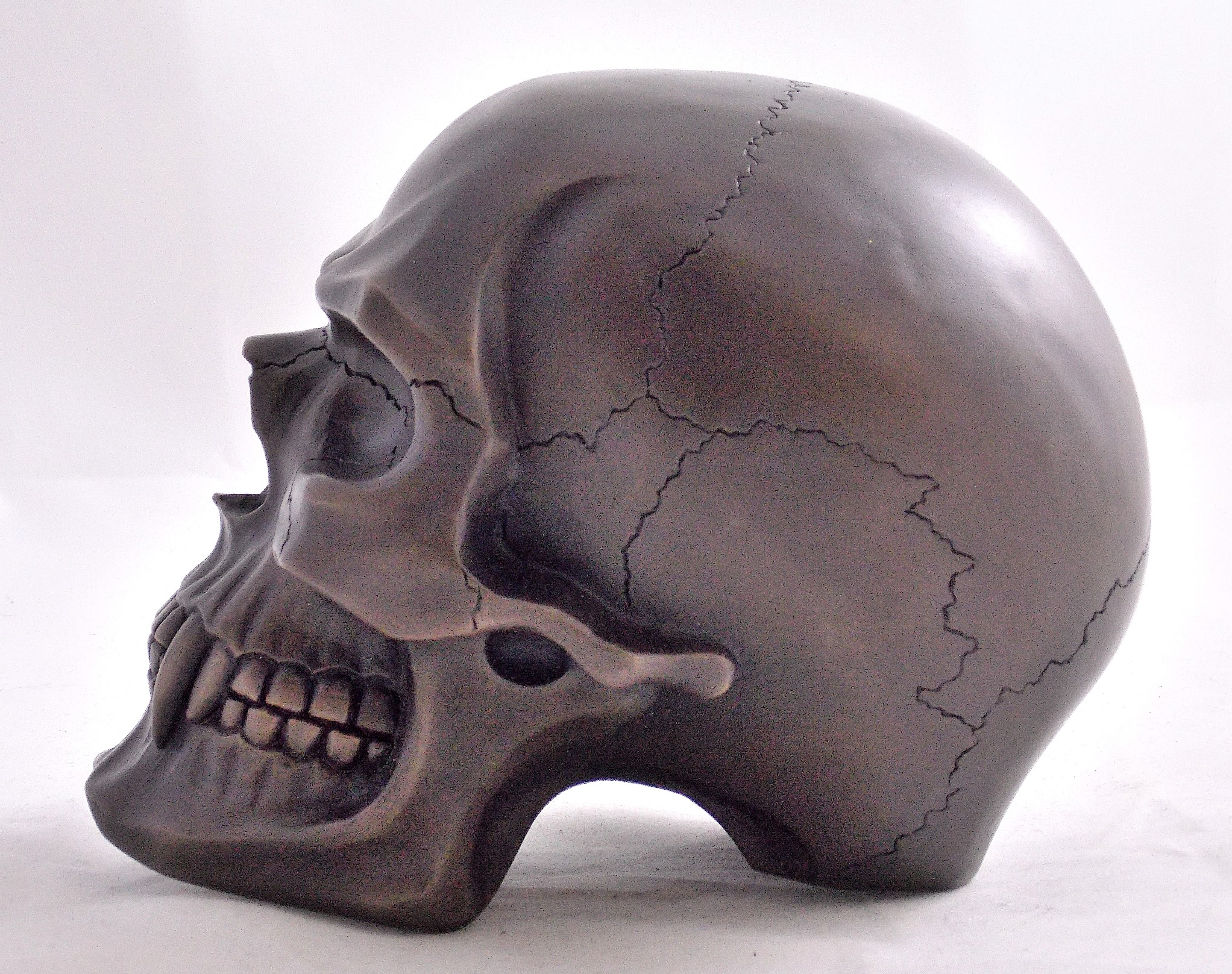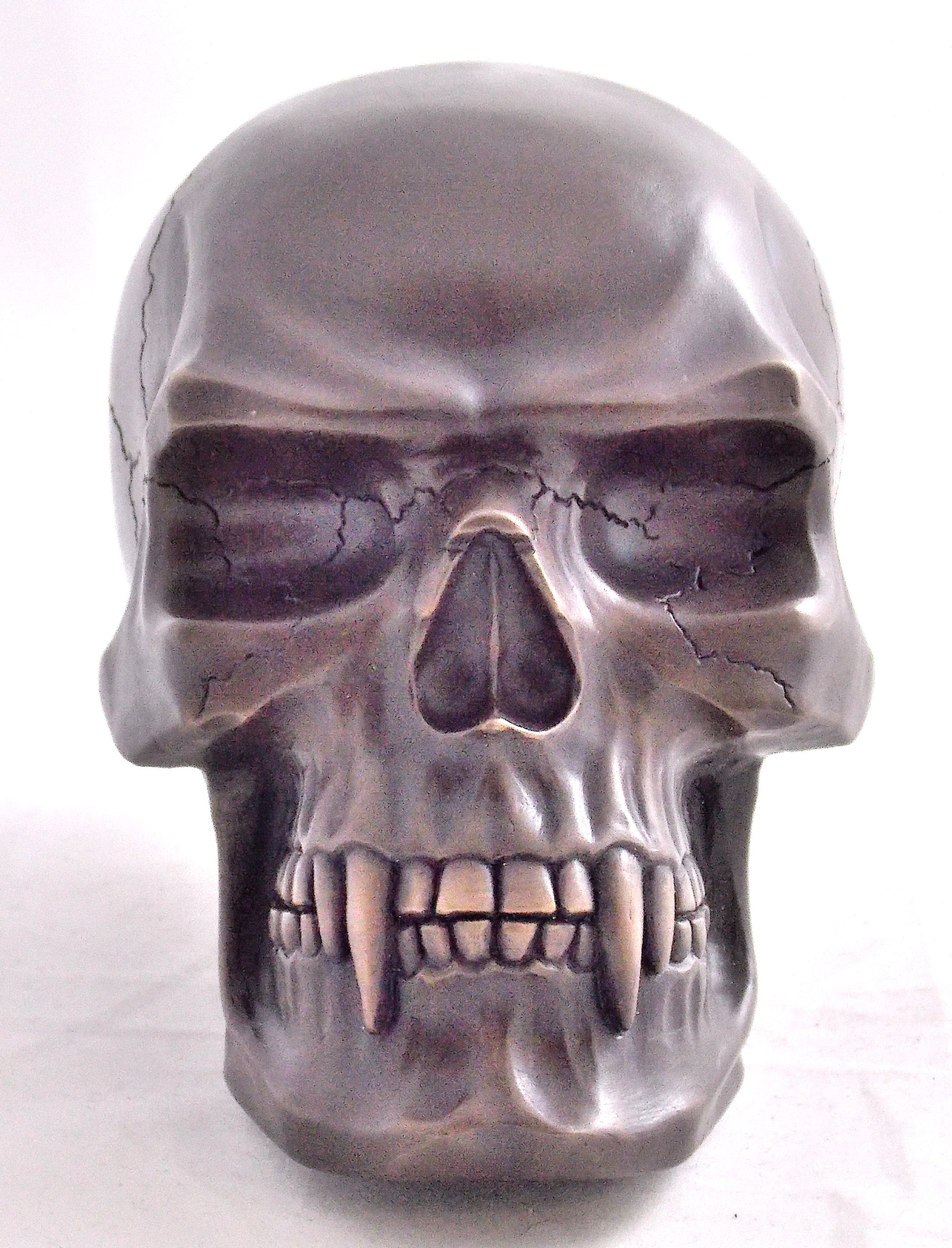 This Vampire Skull urn was created by a customer’s request and attached to a motorcycle handlebar. The urn was cast of bronze at a bronze foundry. Requests for custom-created sculptures are welcome.